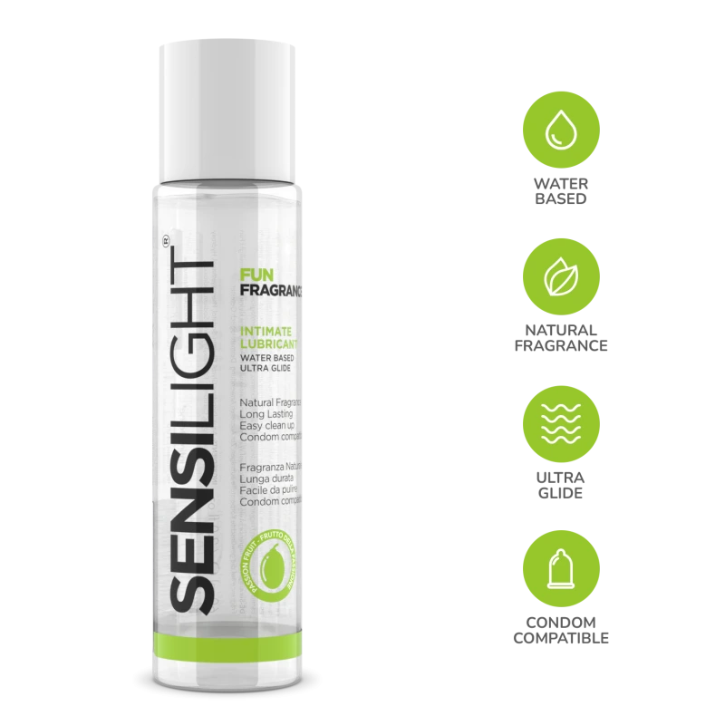 Το Sensilight Fun Fragrance Passion Fruit είναι ένα αρωματισμένο λιπαντικό τζελ, ειδικά σχεδιασμένο για την ενίσχυση της σεξουαλικής απόλαυσης. Για να εγγυηθούμε τις εξαιρετικές λιπαντικές ιδιότητες των προϊόντων μας, δεν χρησιμοποιούμε αρώματα τροφίμων στη διαδικασία παραγωγής, καθώς αυτά συχνά έχουν αρνητική επίδραση στη ρευστότητα των τελικών προϊόντων. Προτιμήσαμε να χρησιμοποιούμε φυσικά αρώματα.